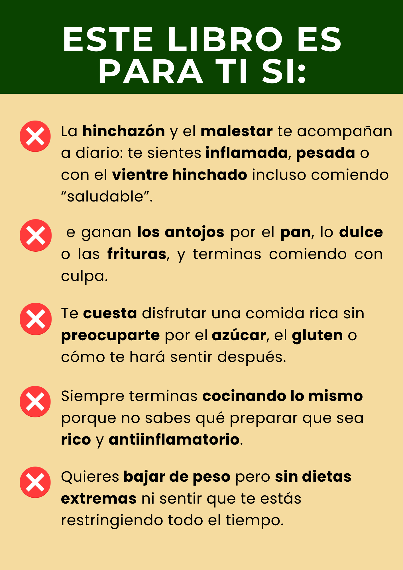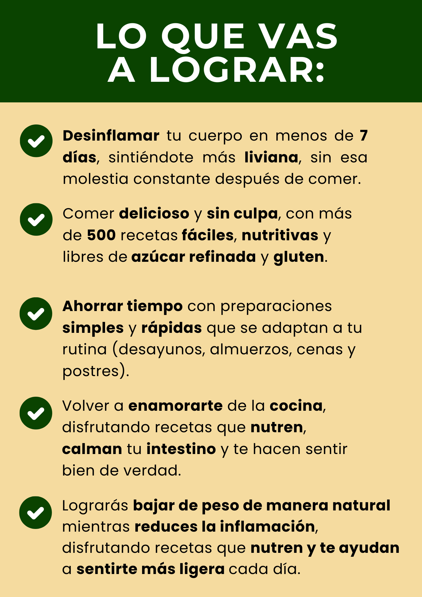 Al desinflamar tu intestino, tu cuerpo elimina el exceso de líquidos, tu metabolismo se desbloquea y se reduce la ansiedad por lo dulce.